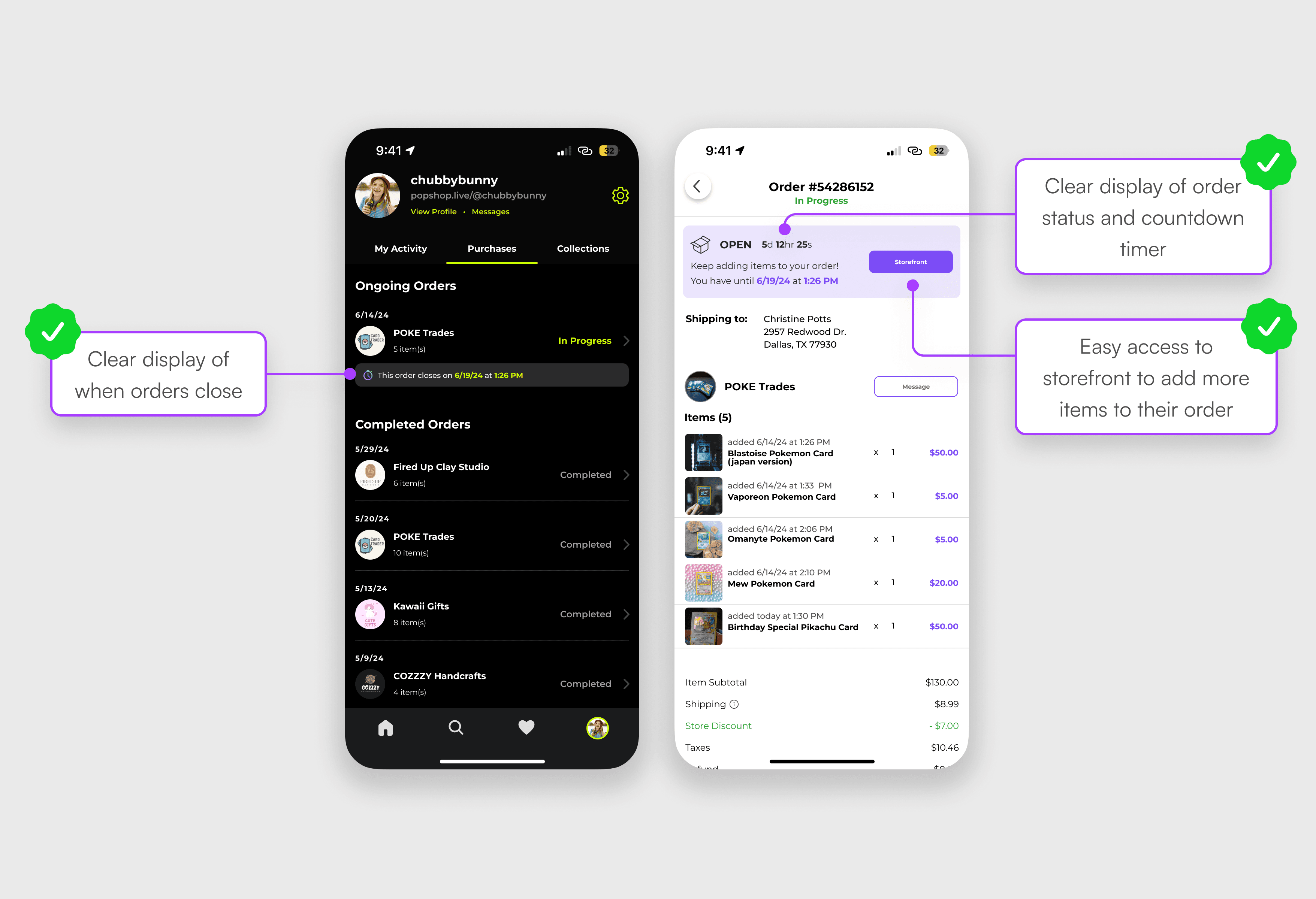 I added clear, prominent time indicators to make the shipping window transparent and easy for users to interpret. Designing within the constraints of Popshop Live’s existing purchasing infrastructure ensured a feasible solution that improves decision-making, reinforces trust, and supports stronger seller outcomes.
