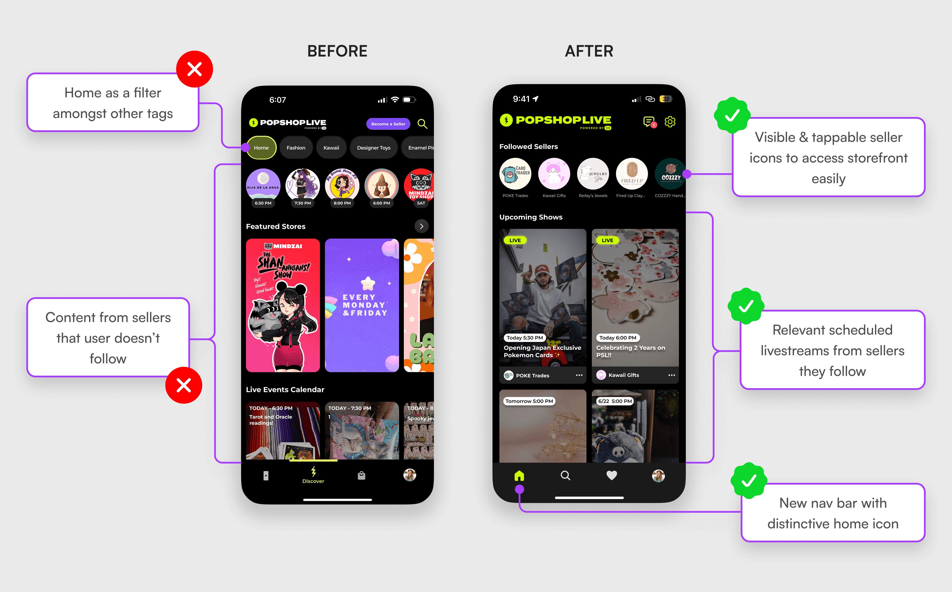 By addressing product discoverability, improving storefront navigation, and clarifying order windows, the updated design removes friction from Popshop Live’s fast-paced shopping environment. These user-validated improvements not only strengthen trust and ease of use but also support Popshop Live’s broader goals of increasing retention and conversion.